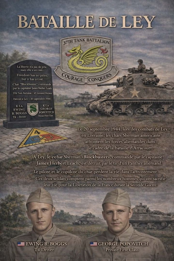 All 37th Armored Regiment Alumni are alerted to begin planning and preparation for participation in OPERATION LEY RESOLVE, the monument dedication for two KIA B Company 37th Tank Battalion 20 SEP 1944 in Ley, France. Reconnaissance confirms the area Ley, Lunéville, Arrocort, and Nancy, France provide exceptional locations for Alumni activities especially for Alumni that reside in Europe.
