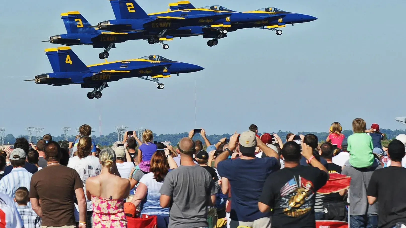 Bus departs 0830 for a 30 minute ride to NAS Jacksonville, gates open at 0900, show starts at 1100. There are no special requirements to enter the installation.