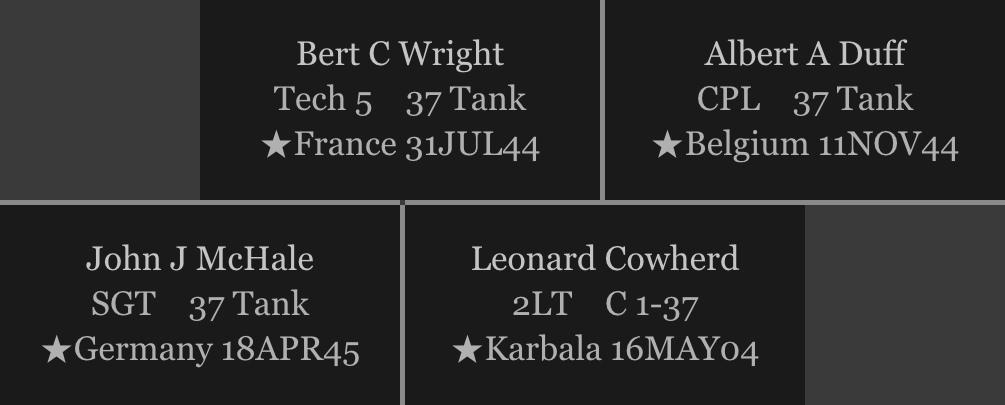 | Timothy L Hayslett | SGT HHC 1-37 | ★Baghdad 15NOV03 |
